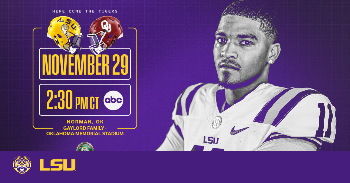 6+ hour, 23+ min ago (521+ words) LSU will be making its first trip to Oklahoma on Saturday and the meeting will be only the fifth all-time between the two programs. The Fightin" Tigers of LSU (7-4) hit the road to Norman on Saturday for an afternoon battle with No. 8 Oklahoma in the regular season finale. Kickoff is set for 2:30 p.m. CT on ABC and the LSU Sports Radio Network. Mark Jones, Roddy Jones and Quint Kessenich will be on the broadcast call, while Chris Blair, Jacob Hester and Gordy Rush will be on the radio call." Last week, the Tigers picked up a victory over Conference USA opponent Western Kentucky on Senior Night, where the program honored its 27-member senior class prior to kickoff. The LSU defense posted another stellar outing, highlighted by freshman corner DJ Pickett, who had five tackles, a sack and an interception, to lead…...